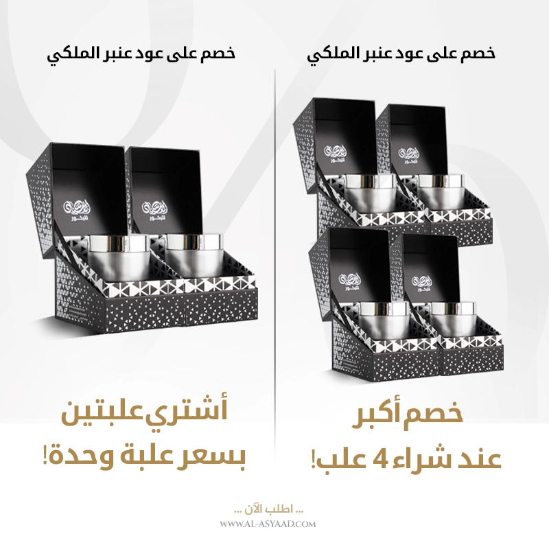 خصم على علبتين وأربع علب عود العنبر الملكي