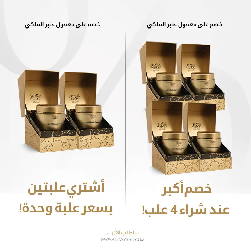 خصم على علبتين وأربع علب معمول بالعنبر الملكي
